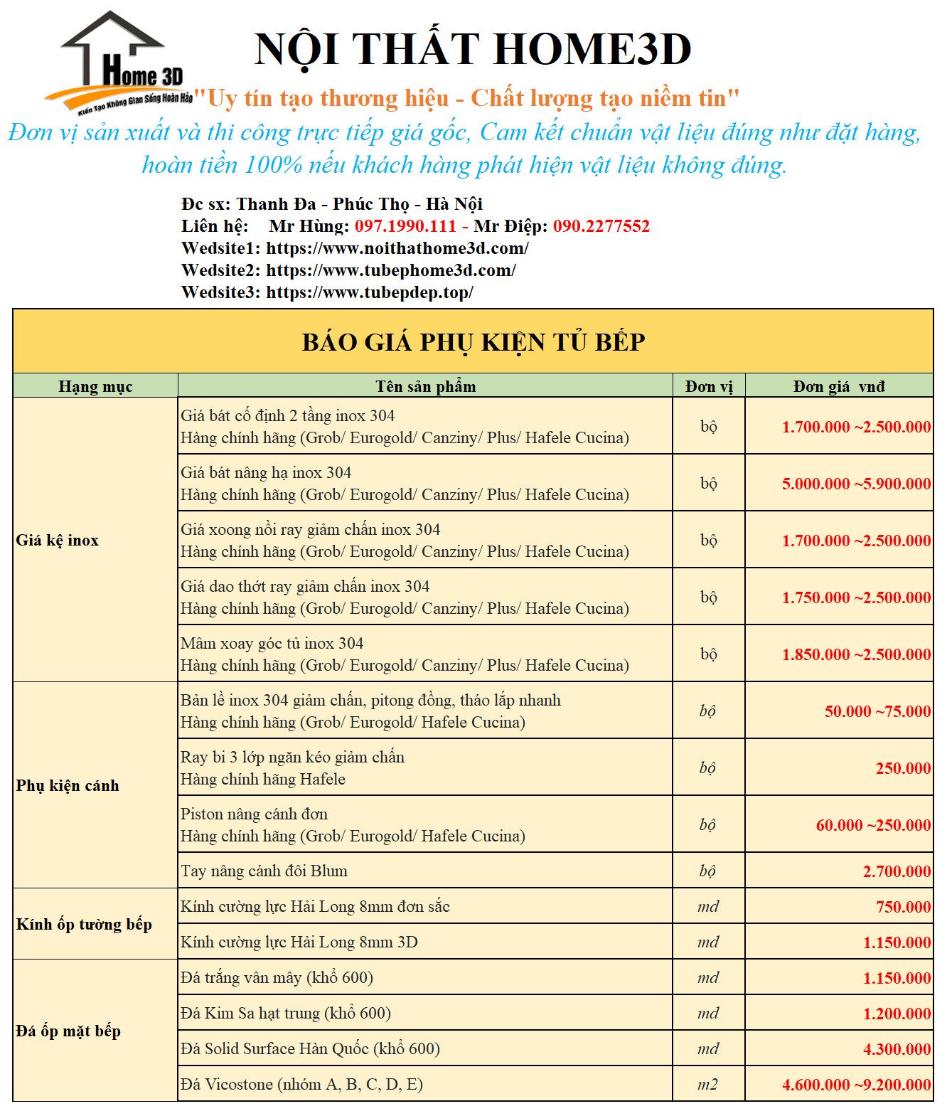 II. BÁO GIÁ PHỤ KIỆN TỦ BẾP.