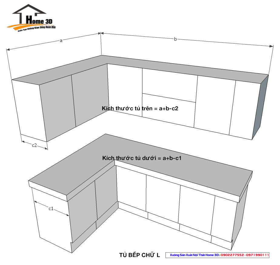 2. Cách tính kích thước và báo giá Tủ Bếp dáng Chữ L