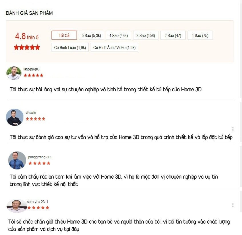 - Giá cả hợp lý: Home 3D cung cấp dịch vụ cải tạo tủ bếp với giá cả cạnh tranh nhất trên thị trường.