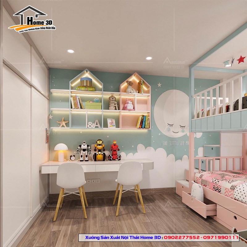 Với nhiều năm kinh nghiệm trong ngành sản xuất nội thất, xưởng nội thất phòng ngủ Home 3D đã cho ra đời nhiều mẫu bàn học cho bé đẹp và đa dạng về kiểu dáng và màu sắc. Bạn có thể tùy chọn cho con mình một chiếc bàn học phù hợp với sở thích và cá tính của bé.