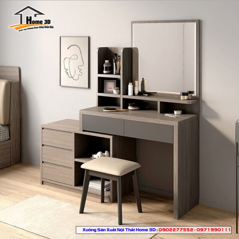 Bàn trang điểm là một vật dụng không thể thiếu trong phòng ngủ của phái đẹp. Nó giúp cho chị em có thể trang điểm và làm đẹp một cách tiện lợi, thuận tiện. Với sự phát triển của ngành công nghiệp nội thất, hiện nay trên thị trường có rất nhiều mẫu mã và kiểu dáng bàn trang điểm khác nhau để đáp ứng nhu cầu sử dụng của người tiêu dùng. Trong đó, các mẫu bàn trang điểm do xưởng nội thất Home 3D sản xuất và thiết kế đang được rất nhiều khách hàng lựa chọn vì tính thẩm mỹ và tính tiện dụng cao.