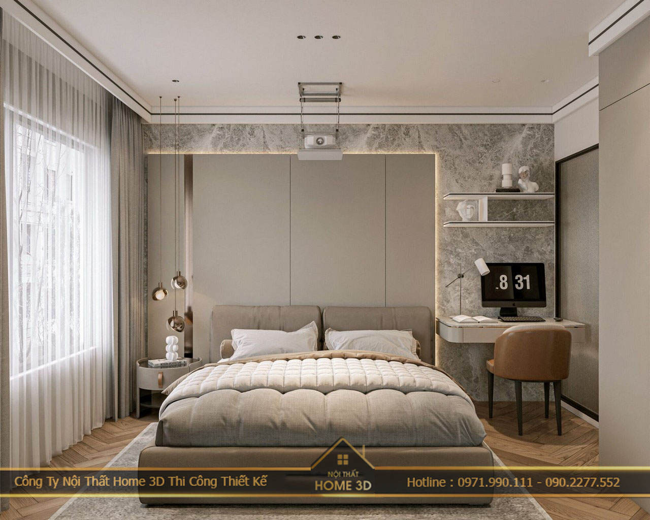 Trong thời đại hiện nay, không gian sống đóng vai trò vô cùng quan trọng trong việc đem lại sự thoải mái và yên bình cho gia chủ. Trong đó, phòng ngủ - nơi nghỉ ngơi sau mỗi ngày dài làm việc - cần được thiết kế thật ấm cúng, tiện nghi và phù hợp với gu thẩm mỹ của mỗi người. Với nhiều năm kinh nghiệm thi công nội thất, Công Ty Nội Thất Home 3D tự tin là đối tác lý tưởng trong việc biến ý tưởng của bạn thành hiện thực.