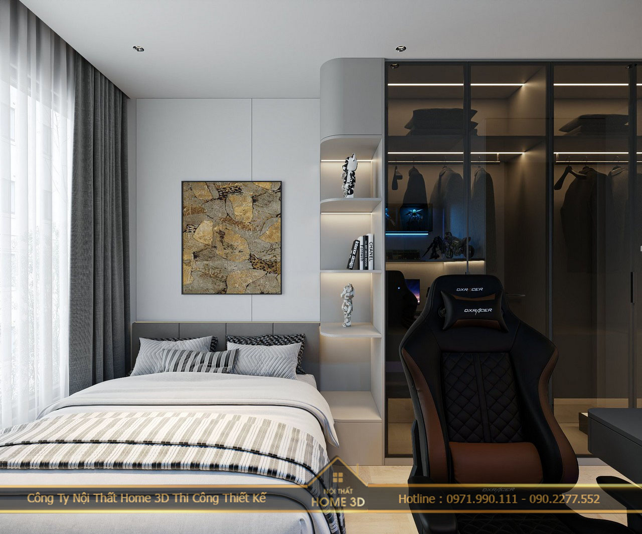 • Kệ tủ âm tường: Tận dụng tối đa diện tích, tạo sự gọn gàng, ngăn nắp cho phòng ngủ.
