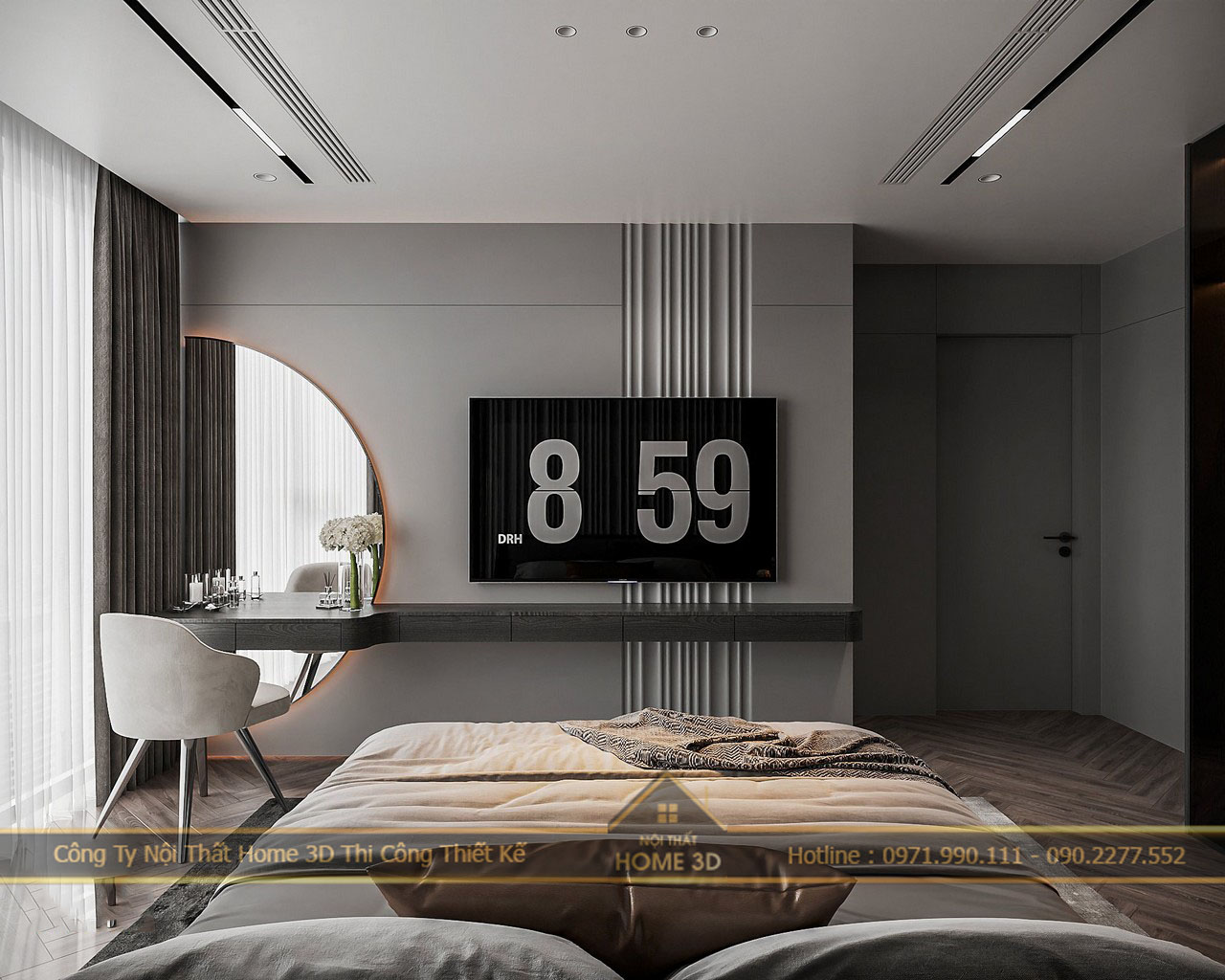 • Phòng ngủ: Phòng ngủ master được thiết kế với giường ngủ rộng rãi, tủ quần áo âm tường, bàn trang điểm đẹp mắt, tạo không gian riêng tư, nghỉ ngơi thư giãn cho chủ nhân. Hệ thống đèn ngủ dịu nhẹ mang đến sự ấm cúng và dễ chịu.