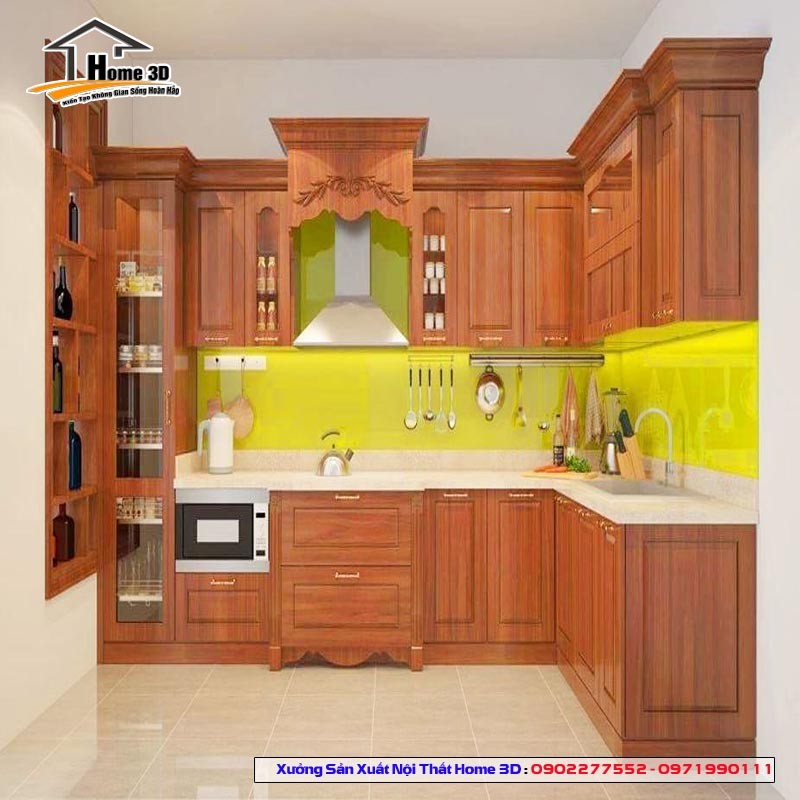 Những mẫu tủ bếp gỗ ở nội thất Home 3D được làm 100% từ gỗ tự nhiên, không hề pha lẫn tạp chất. Trước khi đưa vào thi công, gỗ đã được tuyển chọn vô cùng tỉ mỉ, đảm bảo những sản phẩm tốt nhất giao tận tay người tiêu dùng.