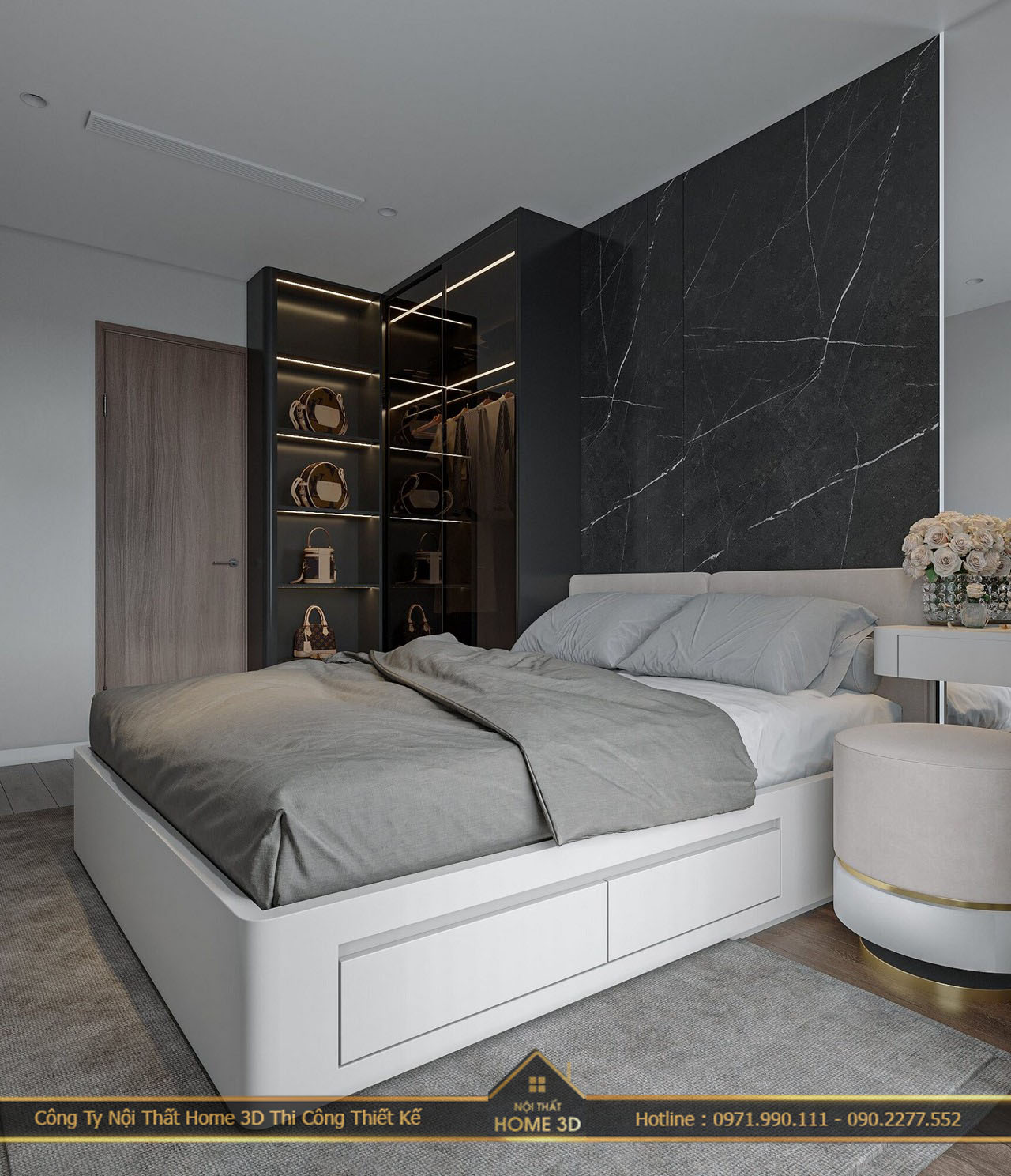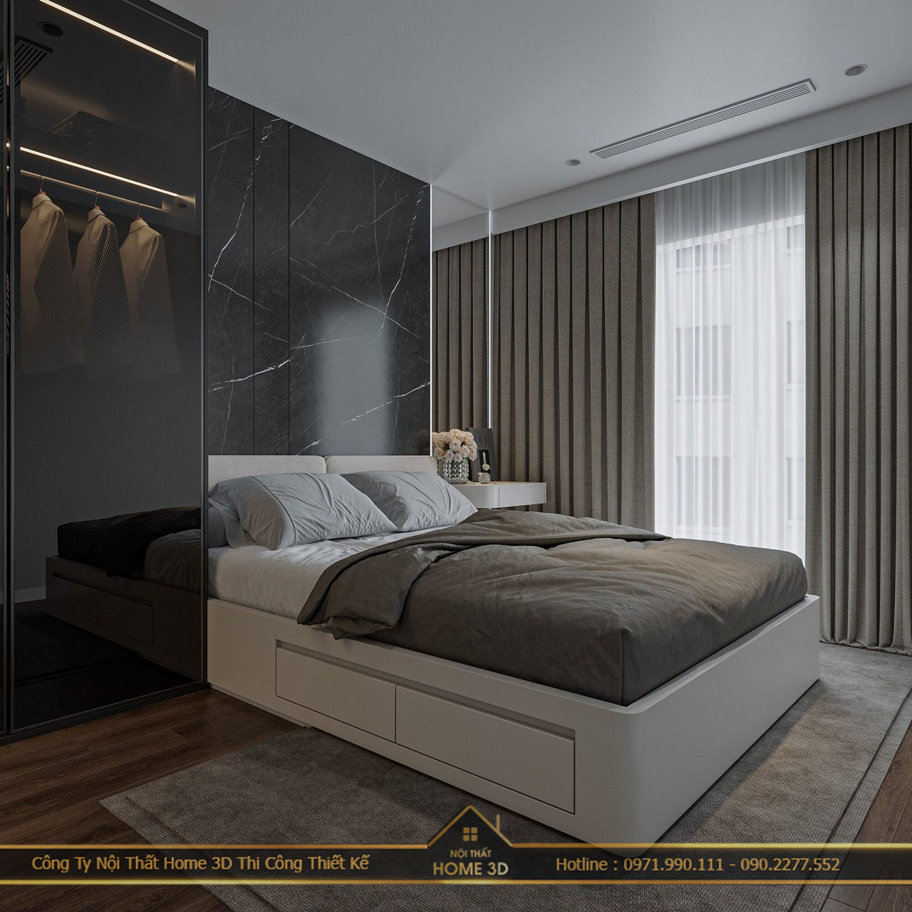 • Bố trí nội thất đơn giản: Sử dụng giường ngủ, tủ quần áo, bàn trang điểm, mang đến sự thoải mái tối đa.