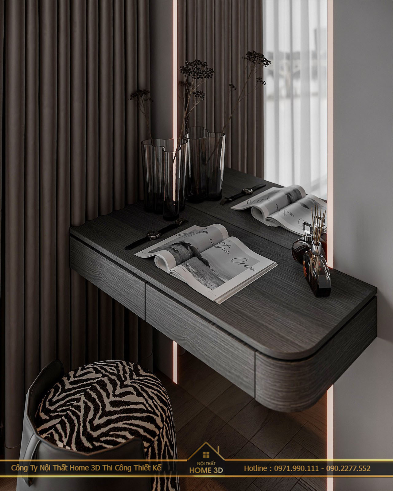 Công ty nội thất Home 3D là đơn vị chuyên thiết kế và thi công nội thất trọn gói cho nhà phố, biệt thự, và chung cư. Với đội ngũ kiến trúc sư giàu kinh nghiệm, chúng tôi cam kết mang đến cho khách hàng những giải pháp nội thất tối ưu nhất, đáp ứng đầy đủ các yêu cầu về thẩm mỹ, công năng và phong thủy.
