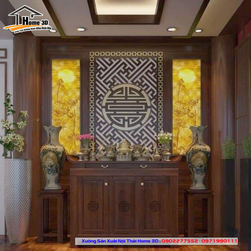 - Phong cách truyền thống:Phong cách này sử dụng các gam màu trầm như nâu, đỏ, kết hợp với các hoa văn truyền thống như tứ linh, rồng phượng, tạo nên sự trang nghiêm và cổ kính cho không gian thờ tự.