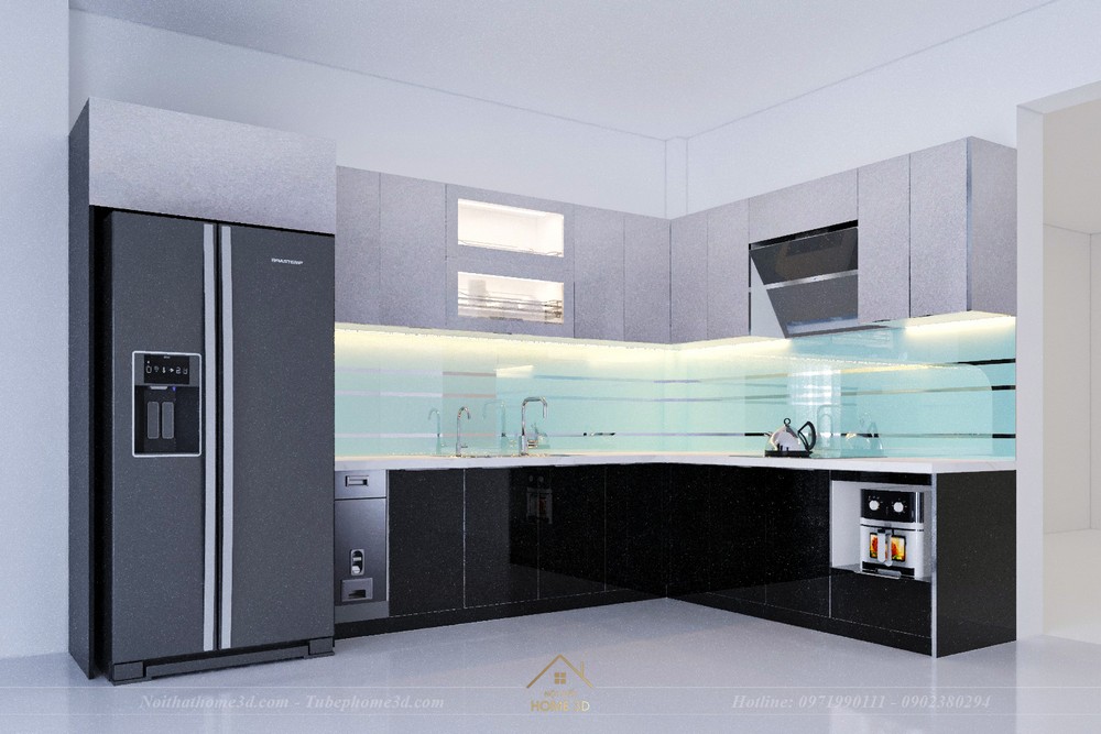 - Tủ bếp Inox cánh kính
