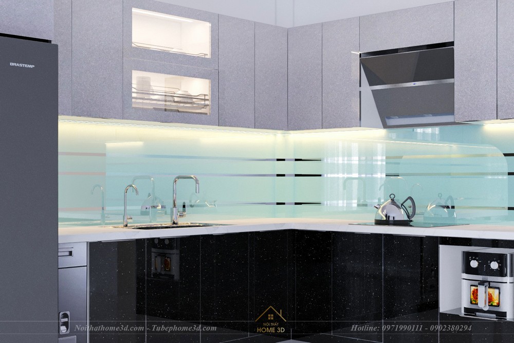 Tư vấn thiết kế tủ bếp Inox cánh kính đẹp và hiện đại
